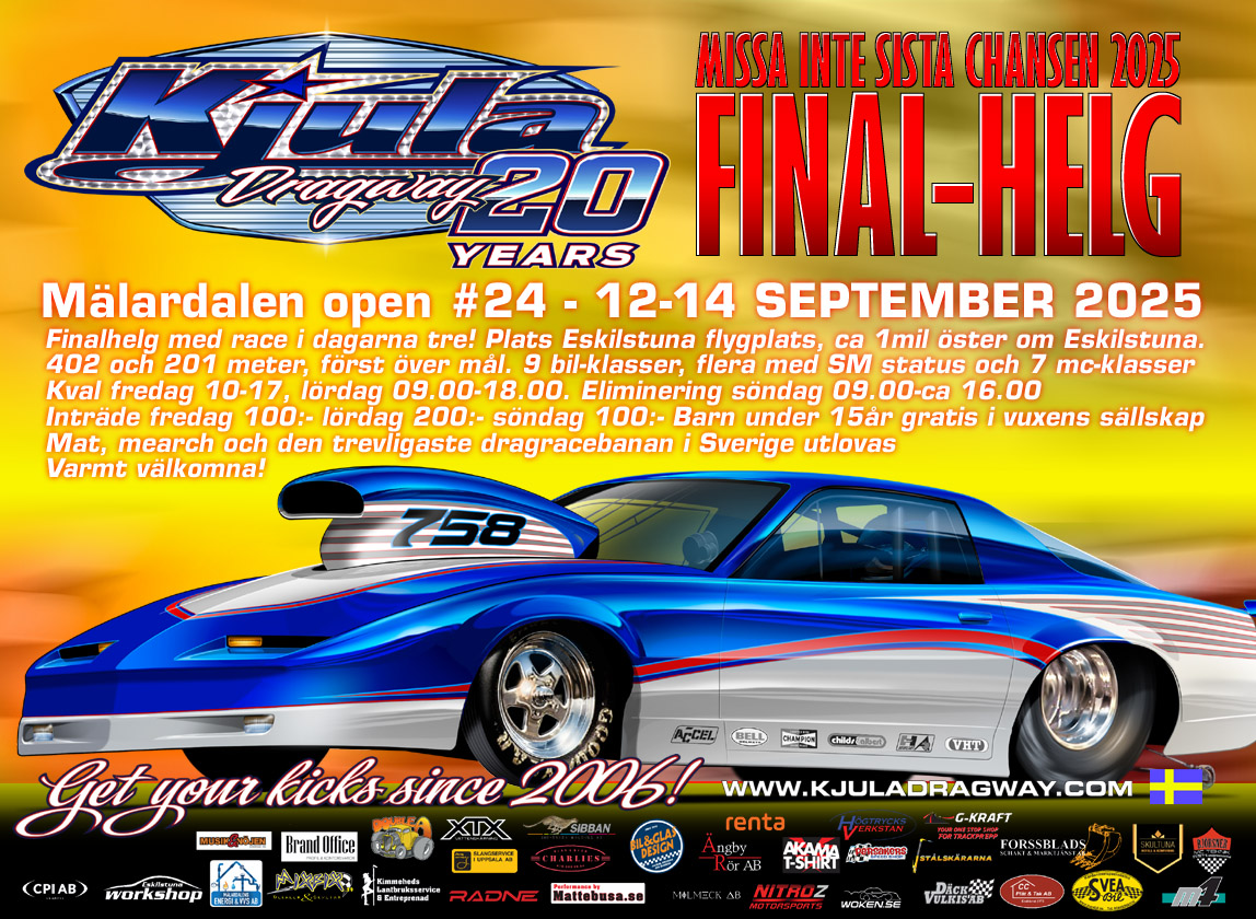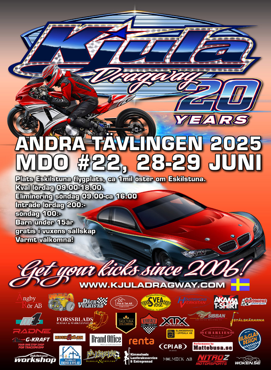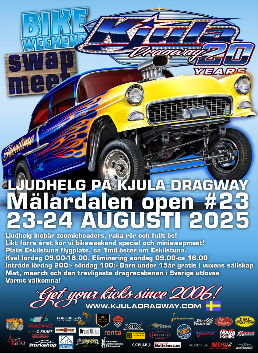 Kjula Dragway ligger cirka 1 mil öster om Eskilstuna.